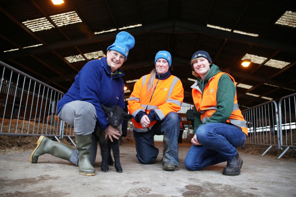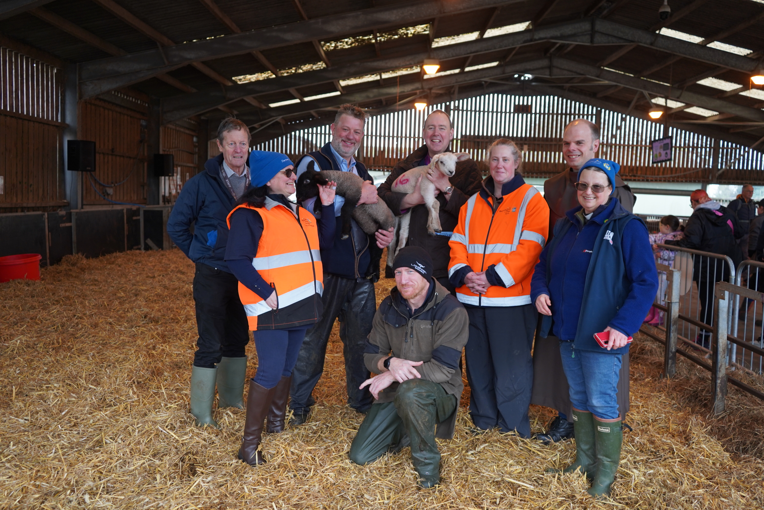 Blessing of the Lambs: Phil Gibbons, Denise Gibson, Iain Clarke, the Bishop of Stockport Sam Corley, Fiona Sampson, Brother James Douglas, Canon Anne Lawson, and Charlie Reeves.A former dairy student who first studied at Reaseheath in 1945 returned to campus to see the next generation of farmers in action during the college’s popular lambing weekends.