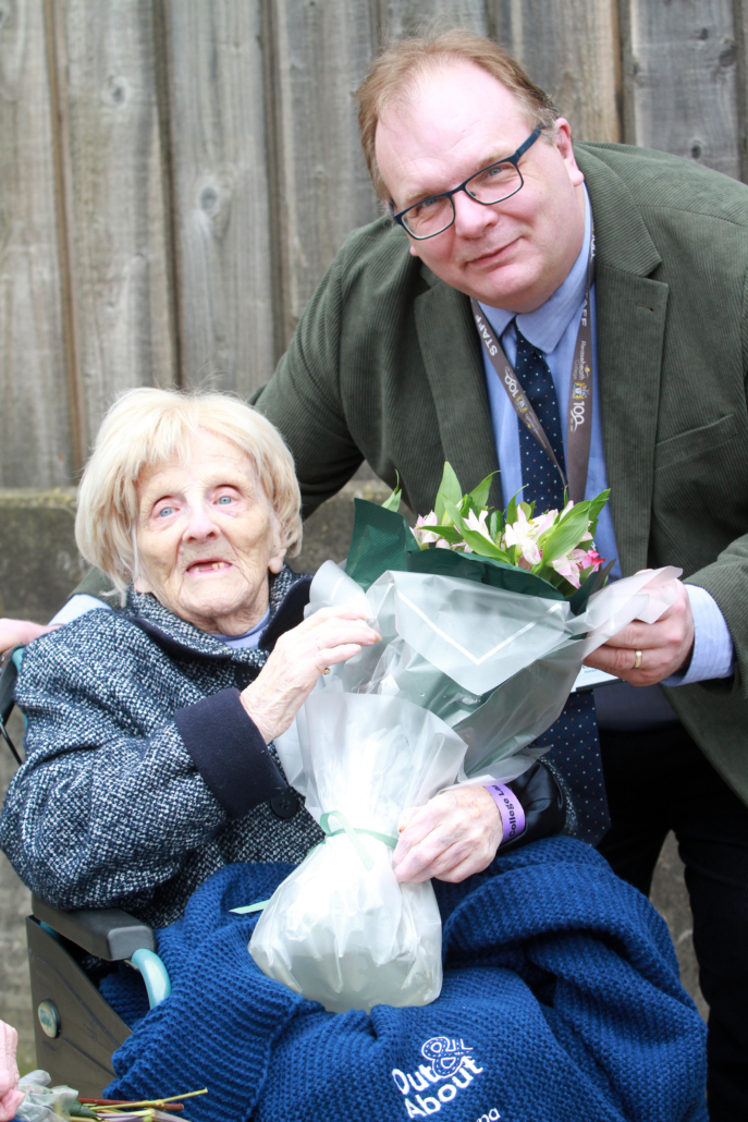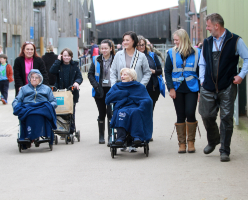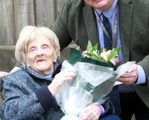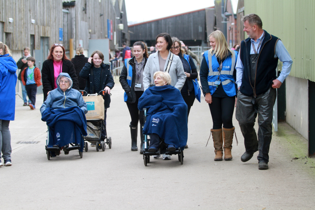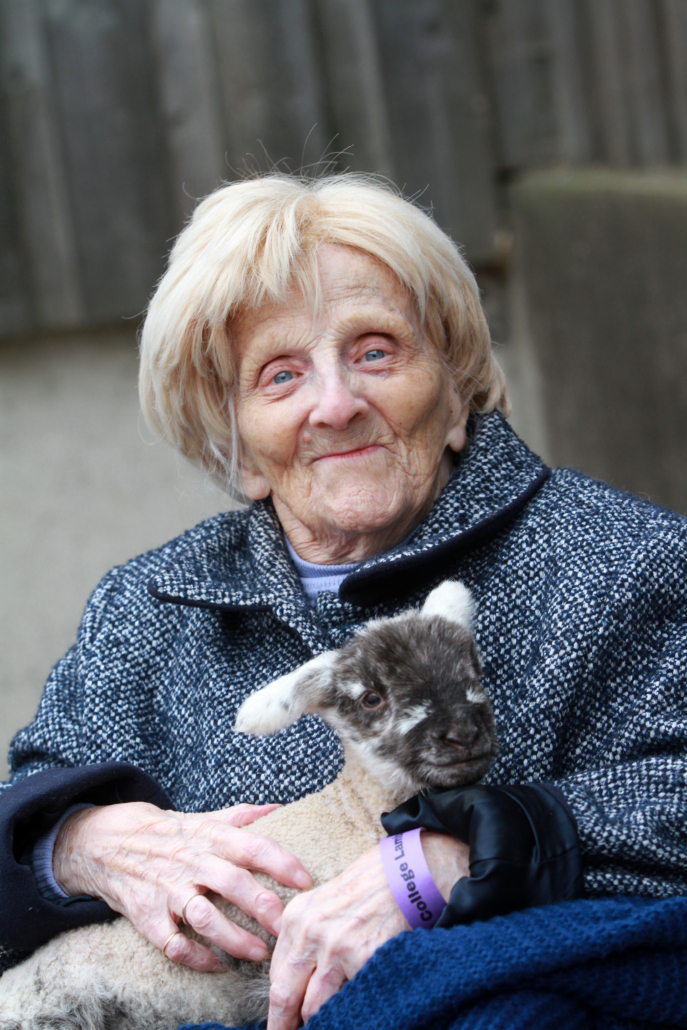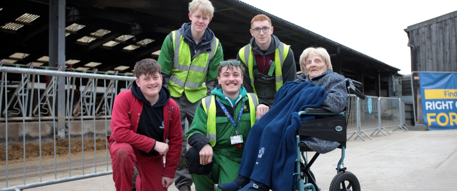 Doreen was introduced to visitors by Iain Clarke, Assistant Principal – Land-based and Sustainability, who shared highlights of her remarkable story and presented her with a bouquet. She also met Principal and CEO Marcus Clinton before touring the lambing sheds, where she met a day-old lamb named Pebbles and current agriculture students Alfred Marchant, Sam Farrell, Jack Davies and Adam Wainwright.