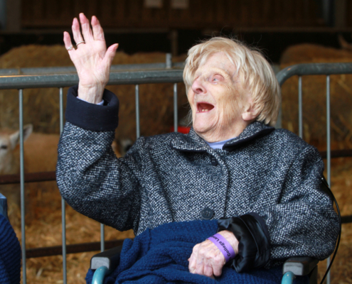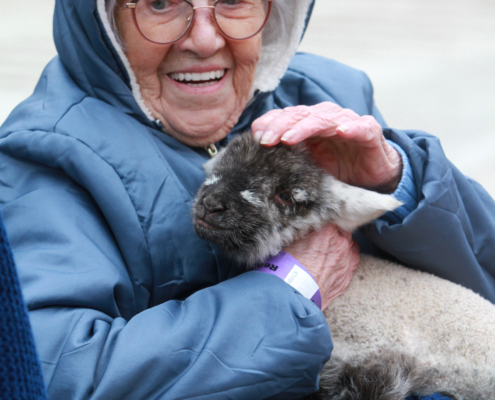 Doreen Taylor Brown, now living at Newton Court Care Home in Middlewich, was warmly welcomed back to Reaseheath College and University Centre in Nantwich more than 80 years after her time as a student. She was joined by her twin sister Joyce for the visit, which coincided with this year’s Lambing and Mini Zoo Weekends.