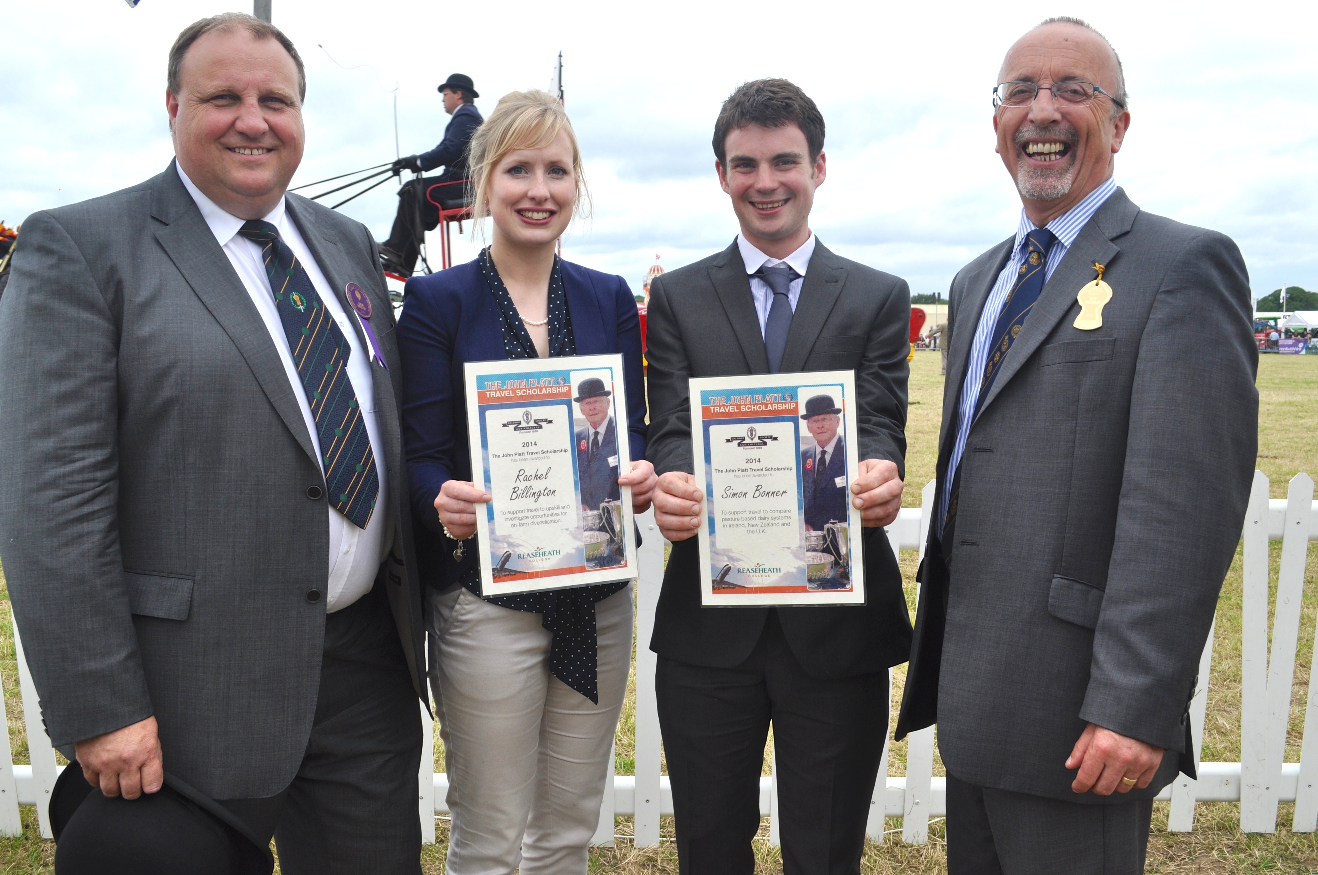 Rachel Billington and Simon Bonner receive John Platt award from Show Director Keith Thomas and Meredydd David