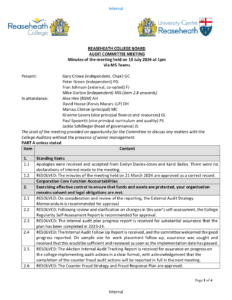 You are here: Home1 / 2 / About Us3 / The College Board4 / Audit Committee Meeting Minutes 10 July 2024