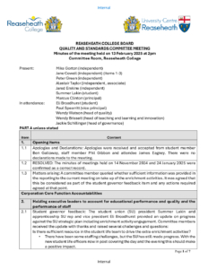 You are here: Home1 / 2 / About Us3 / The College Board4 / Quality and Standards Committee Meeting Minutes 13 February 2025