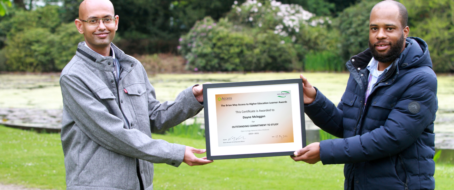Rory Brace and Dayne Mcleggan each received a top prize and a £600 bursary for further study at the virtual Open College Network West Midlands Brian May ‘Access to Higher Education (HE)’ Learner Awards.