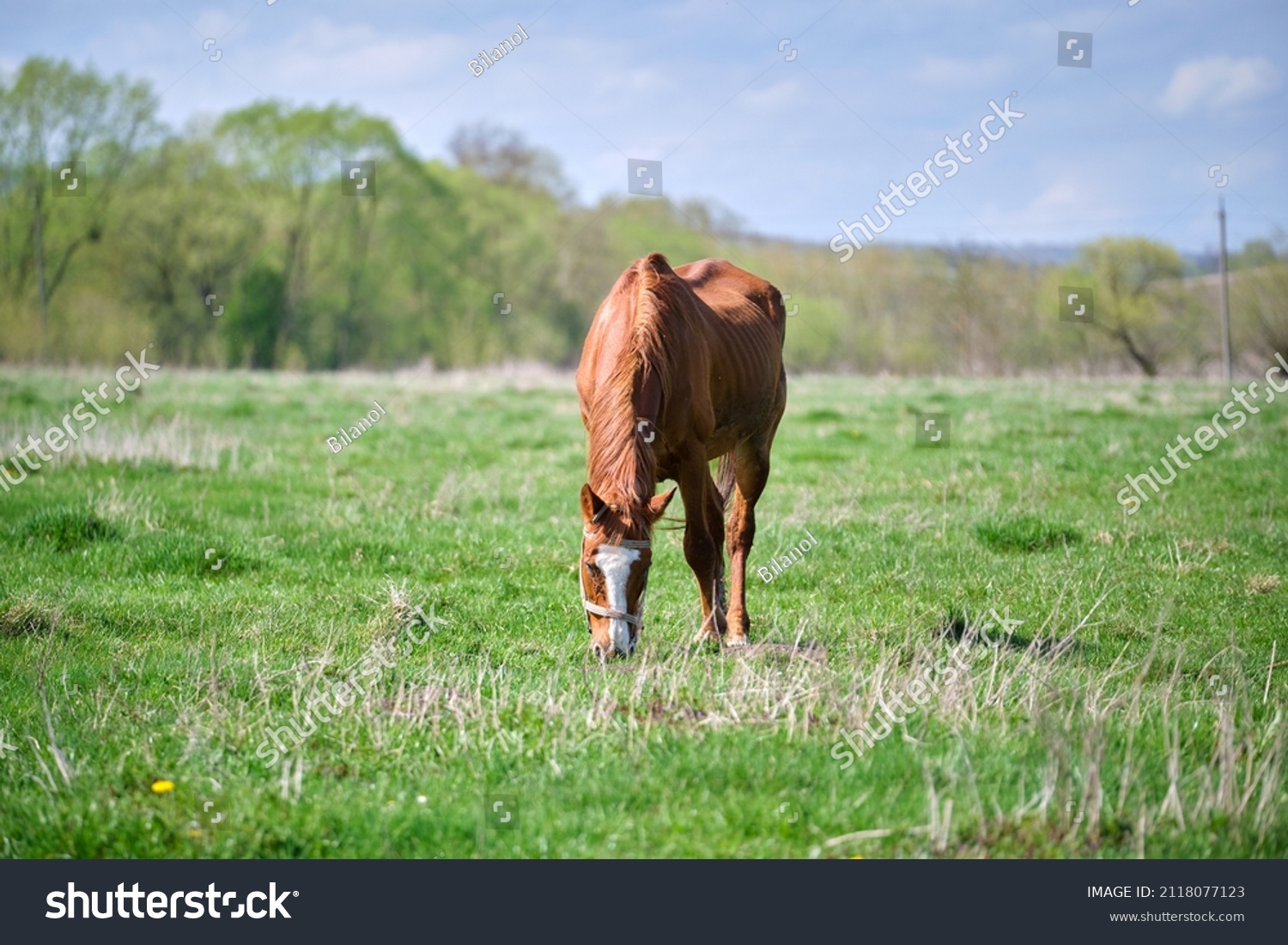You are here: Home1 / 2 / Grassland Management for Horse Owners*3 / stock-photo-thin-chestnut-horse-eating-grass-while-grazing-on-farm-gra...