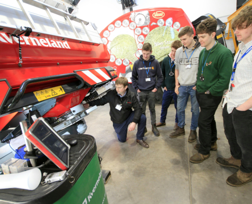 The companies sent sophisticated machinery which were demonstrated as part of a unique Technical Training Day for full time students and apprentices. These included the world’s fastest tractor, built by JCB and driven to a record breaking 136 mph by motorsports personality Guy Martin, and Vaderstad’s industry leading superfast seed drill.