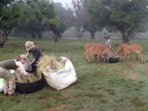 Charlie Lyne Becky Bennet feed nyala and common duiker