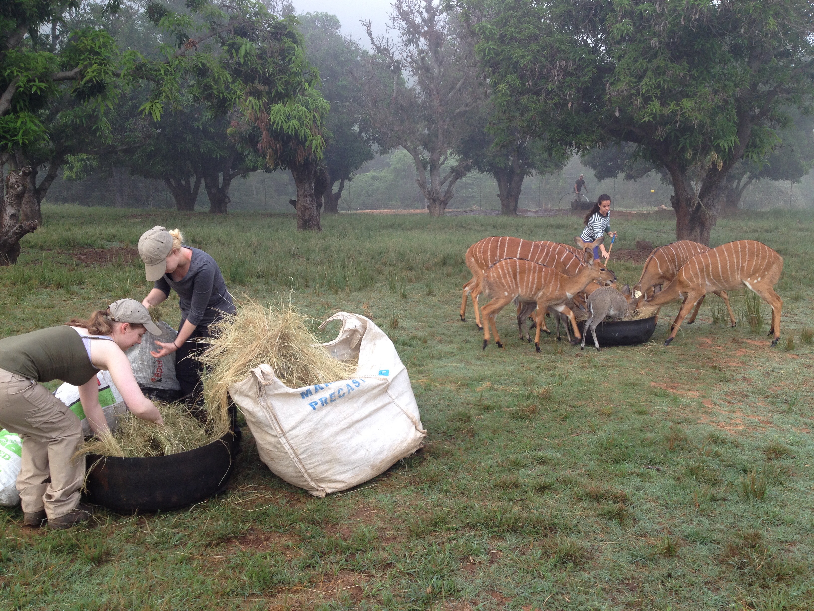 Charlie Lyne Becky Bennet feed nyala and common duiker