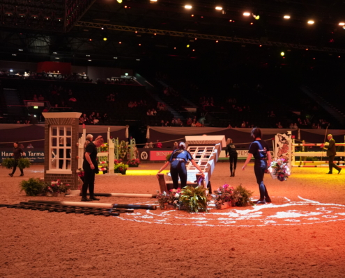 Our team of 40 students and staff worked alongside the show jumping course designers in the international arena and also helped with the Future Elite Dressage Championship, the Pony Club mounted games and the harness scurry throughout the full five days of the show.
