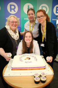 You are here: Home1 / 2 / Bakery students and staff create cake for royal occasion3 / Sam Copeland, Erin Riley, Lili Dufley, Heather Lambert with RDA celebration...