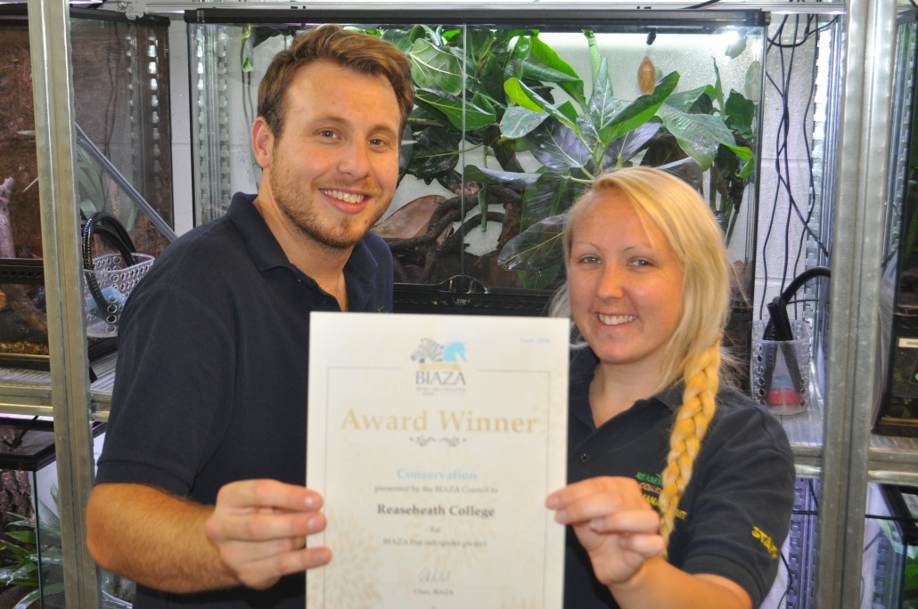 Reaseheath Zoo has been awarded a prestigious gold award by the British and Irish Association of Zoos and Aquariums (BIAZA) for its efforts to conserve the endangered fen raft spider (Dolomedes plantarius).