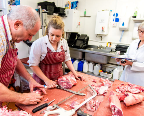 Apart from using her butchery skills, Lucy sets up the meat counter, serves customers at the busy shop and receives and checks orders from pubs, restaurants and cafes. She also carries out risk assessments at her workplace and cleans down the shop and work room to the highest hygiene standards.