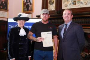You are here: Home1 / 2 / Celebrating 500 graduates through Reaseheath and Building Heroes partnership3 / Joelle Warren (High Sheriff), Terry Suckling, Major General (Retd) Richard...