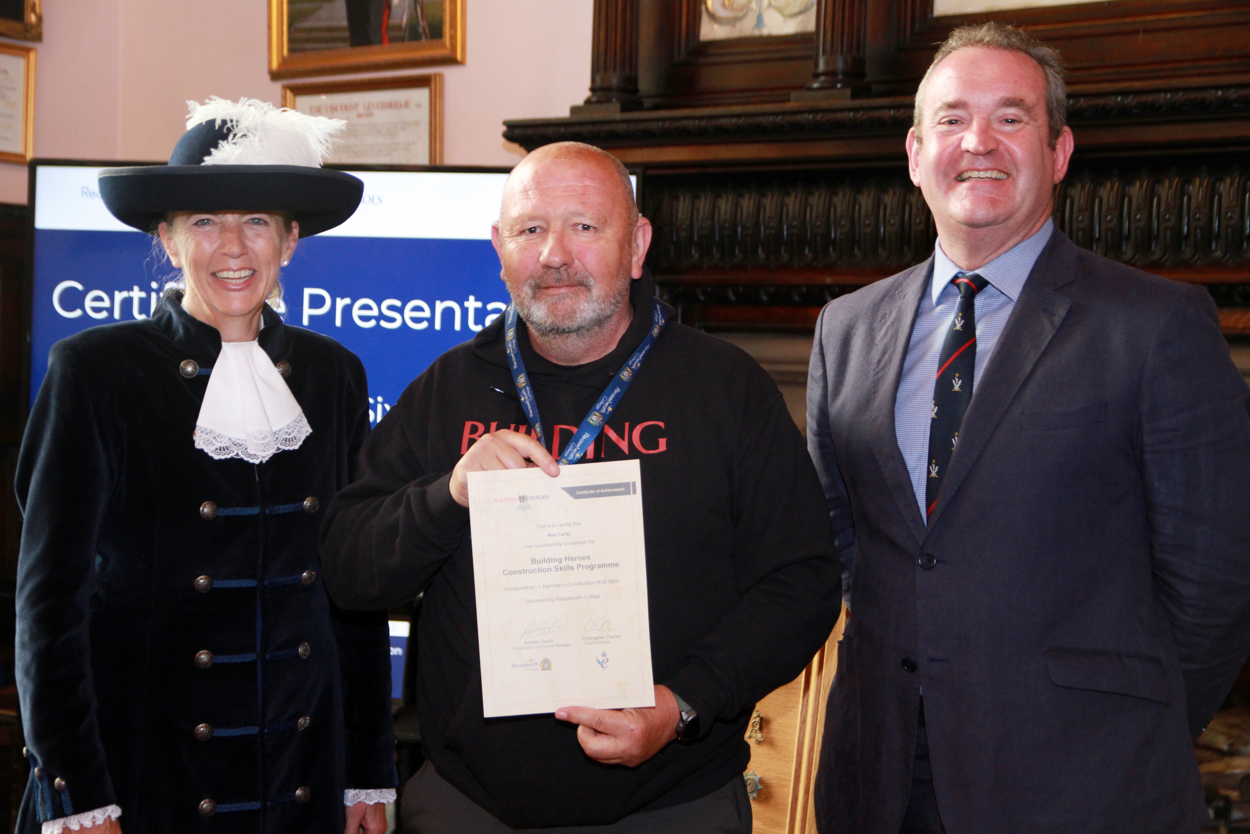 You are here: Home1 / 2 / Celebrating 500 graduates through Reaseheath and Building Heroes partnership3 / Joelle Warren (High Sheriff), Wes Farley, Major General (Retd) Richard...