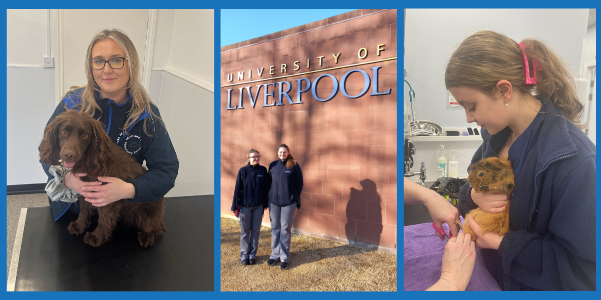 Three pictures of female veterinary nursing apprentices from Reaseheath College and University Centre