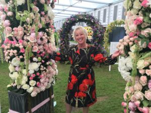 You are here: Home1 / 2 / Chelsea medal for Reaseheath florists3 / TV Presenter Carol Klein with floral arch