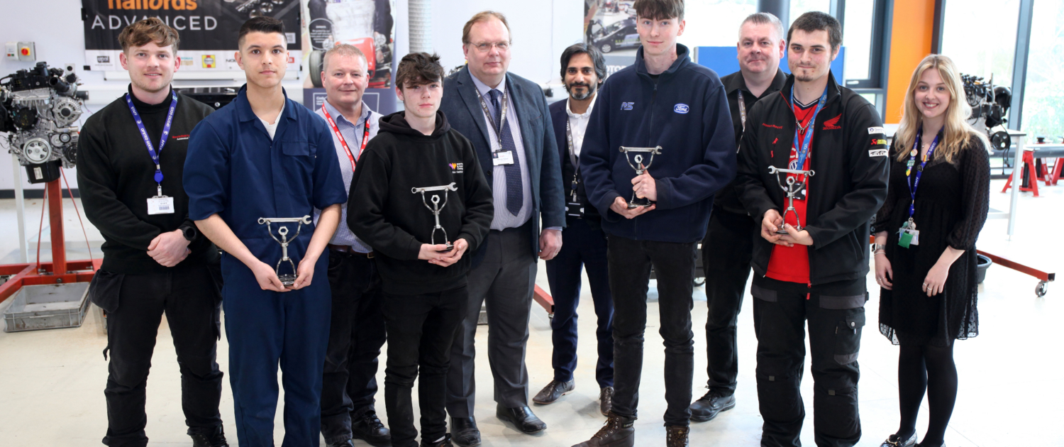 The students, who are all studying a Level 3 or Level 2 Diploma in Light Vehicle Maintenance and Repair, faced a practical challenge in which they removed and replaced a cylinder head gasket on a stand mounted engine. They were judged on a range of skills including their use of technical data, use of tools and equipment, awareness of health and safety and on the overall quality of their work. The students were then quizzed by a panel of professionals to test their depth of knowledge.