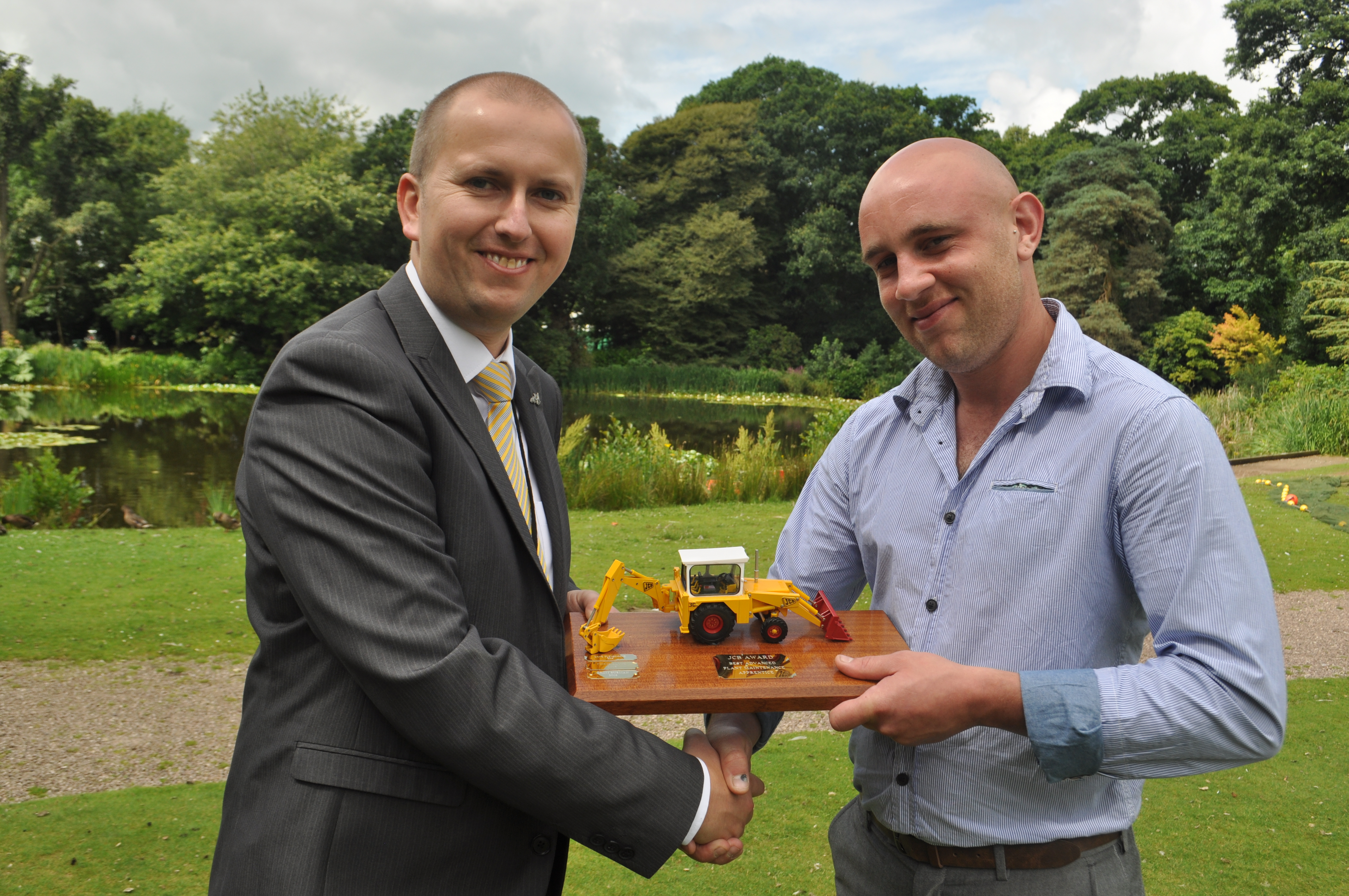 You are here: Home1 / 2 / Construction Plant Maintenance Apprentices celebrate success3 / richard-hough-jcb-training-manager-adam-burman-top-jcb-franchis-appren...