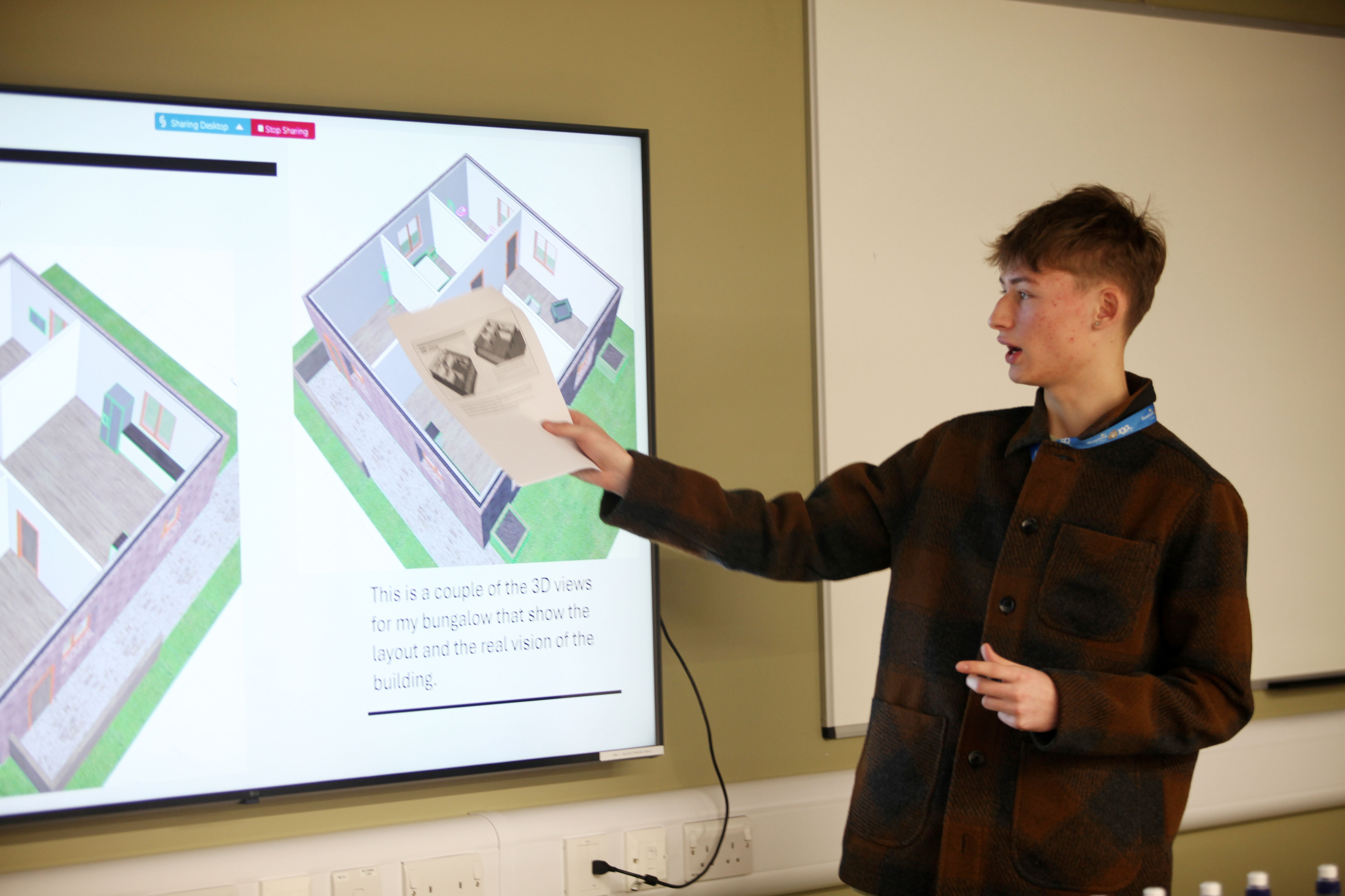 You are here: Home1 / 2 / Construction students gain valuable skills thanks to industry collaboration3 / Ethan Leese presents bungalow design