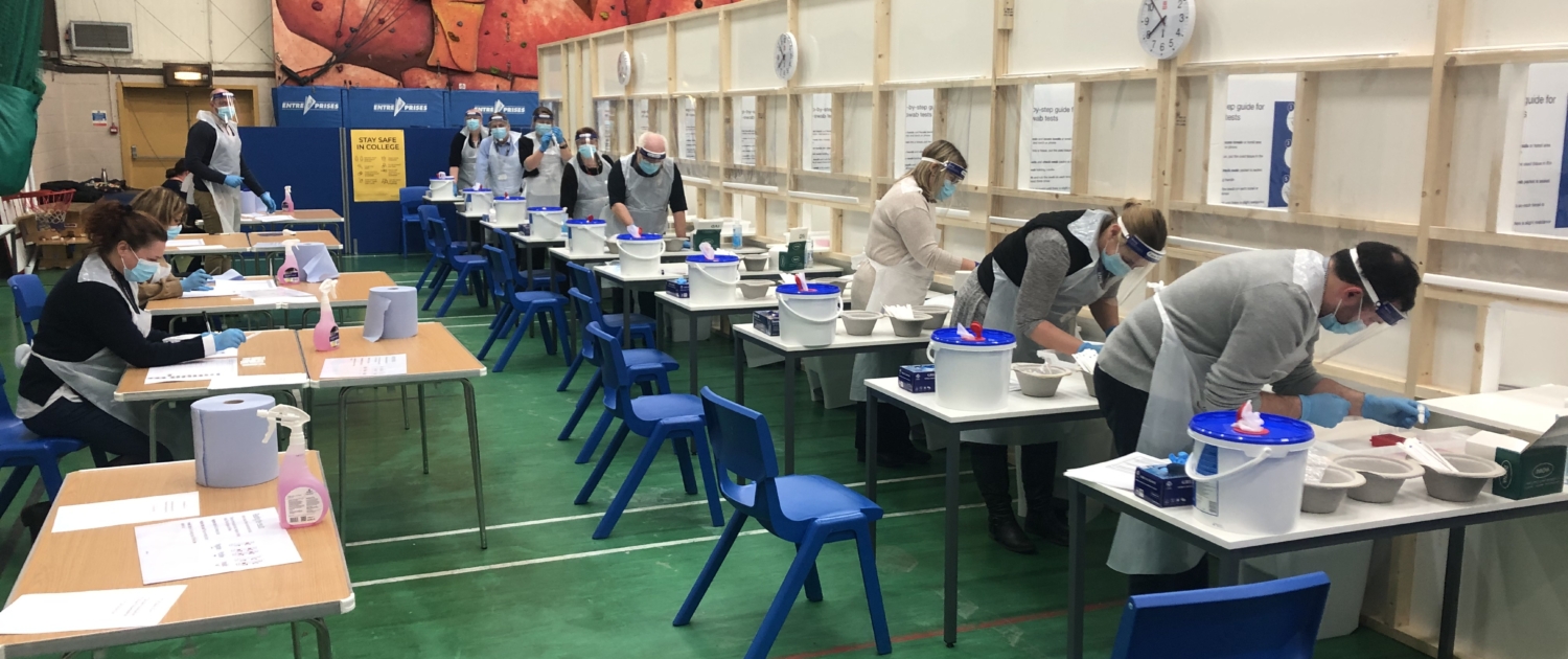 Based in the Lord Woolley Centre, our drop-in testing facility, which is currently open from 8.15am to 10.30am daily, offers rapid swab tests for the limited number of students and staff accessing college. The tests – which show results within an hour – improve the detection of positive cases in individuals who are yet to show symptoms and help to prevent onward transmission. The testing team are staff volunteers who have been through strict online and onsite training before taking up their roles.