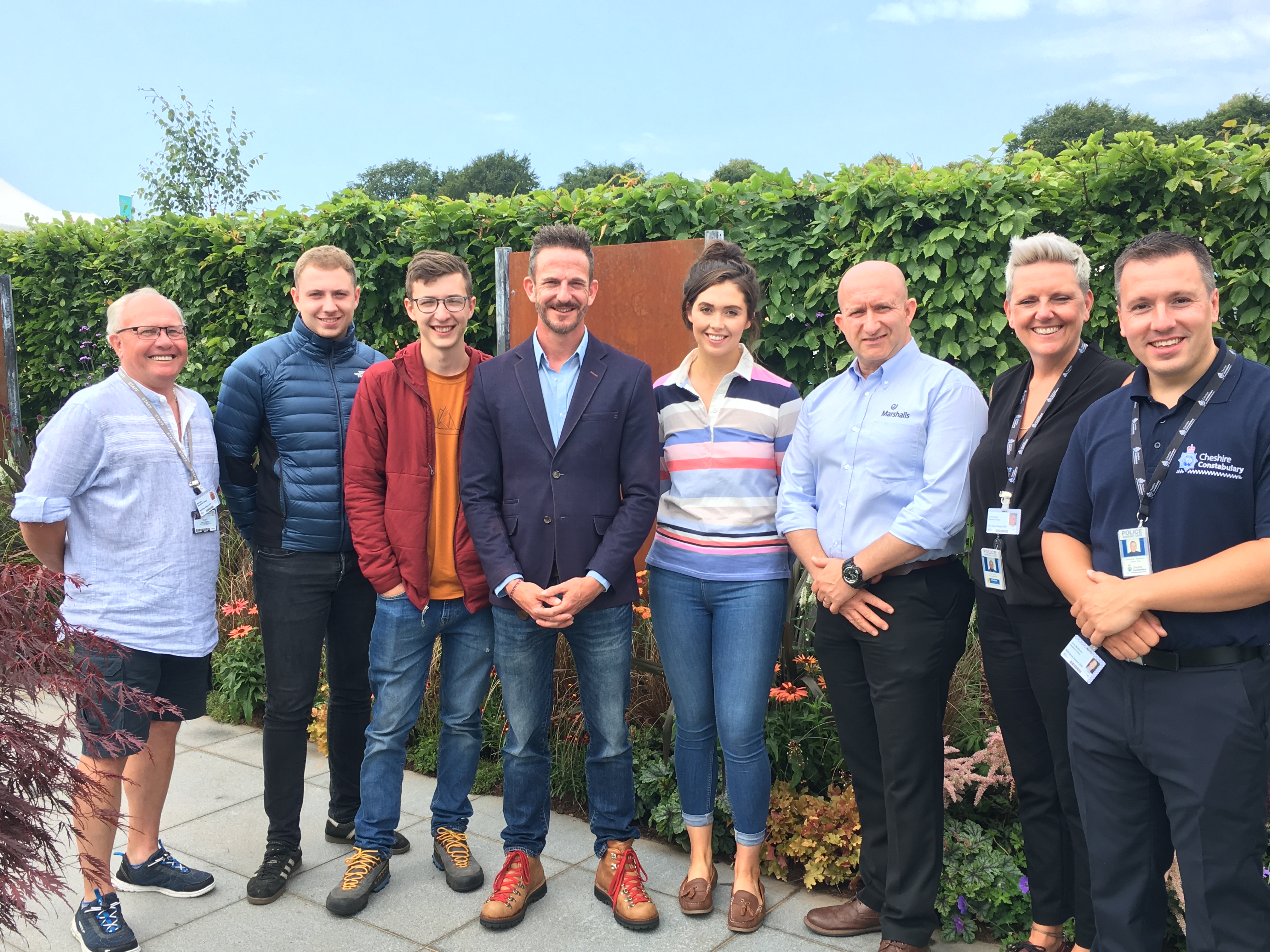 You are here: Home1 / 2 / Cyber Crime garden sows the seeds of online safety3 / Reaseheath’s student design and build team with tv presenter Nick Bailey, M...