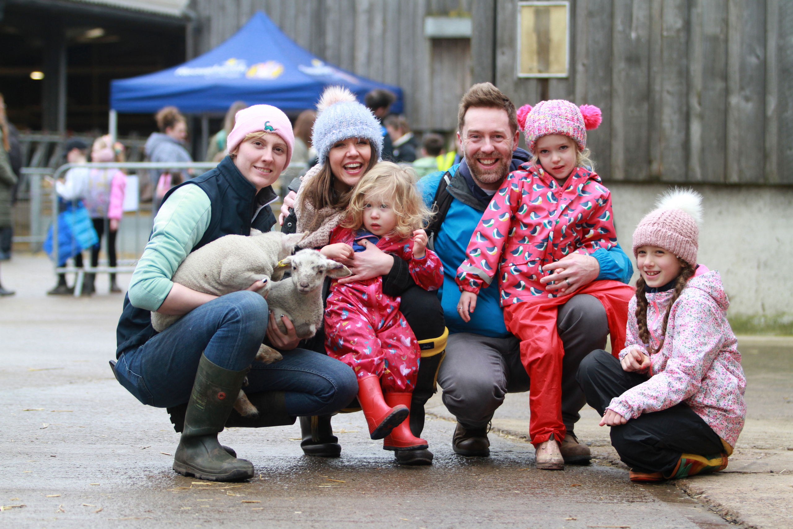 You are here: Home1 / 2 / Families flock to Reaseheath College’s Lambing Weekend3 / Fiona, Isla, James, Keira and Millie Rose meet Rachael Tuckey with lambs...