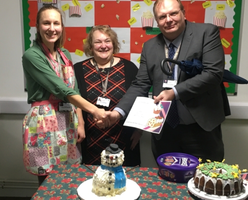- Another big hit during the fayre was a ‘live’ Christmas Cake-Off which saw eventual winner Sarah Waddington, a teaching and learning coach, going head to head against a joint team of Payroll Manager Sam Straker and HR Learning and Development Business Partner Susan Poole. Both finalists decorated cakes which were judged on design, creativity, aesthetic appeal and how much they represented the ‘Winter Wonder’ theme.