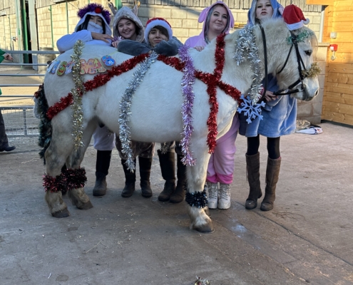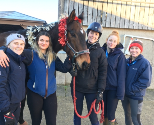 - A Christmas themed charity horse show in which teams of equine students raced round two obstacle courses – one mounted and one on foot – against the clock. Teams were also awarded points for the best decorated pony or horse