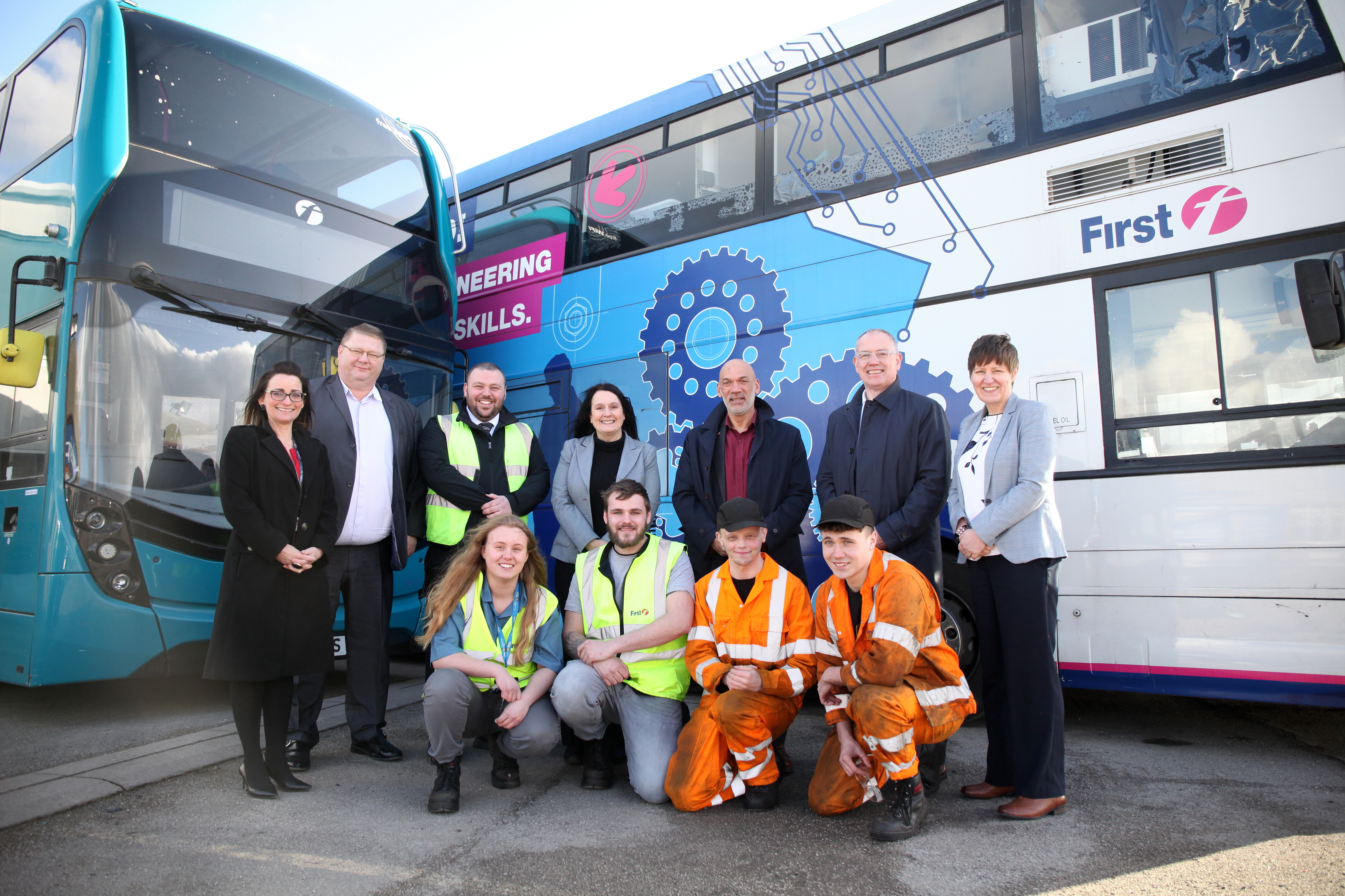 You are here: Home1 / 2 / First Bus celebrates National Apprenticeship Week with a visit to Reaseheath’s academy3 / Group photo taken during First Bus visit