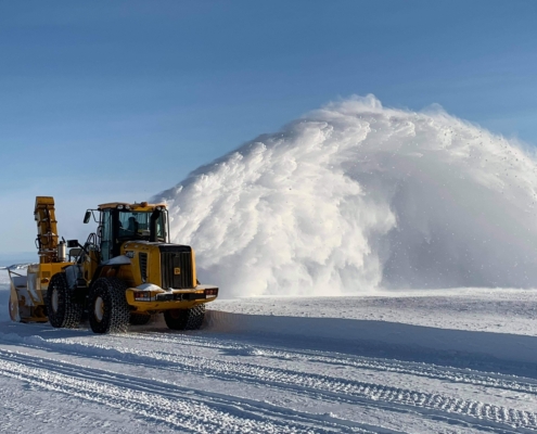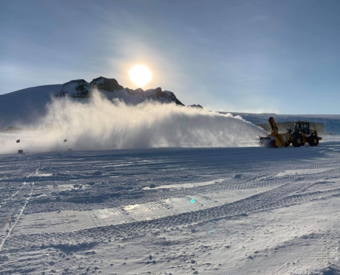 “The type of machines I maintain and drive include 13 tonne PistenBullys for moving snow and 40 tonne loading shovels which we use to clear the aircraft runways. We also have piste bashers, bulldozers and snow mobiles, and we do light maintenance on the aircraft when required. We often fly between sites and it’s great fun co-piloting the planes.