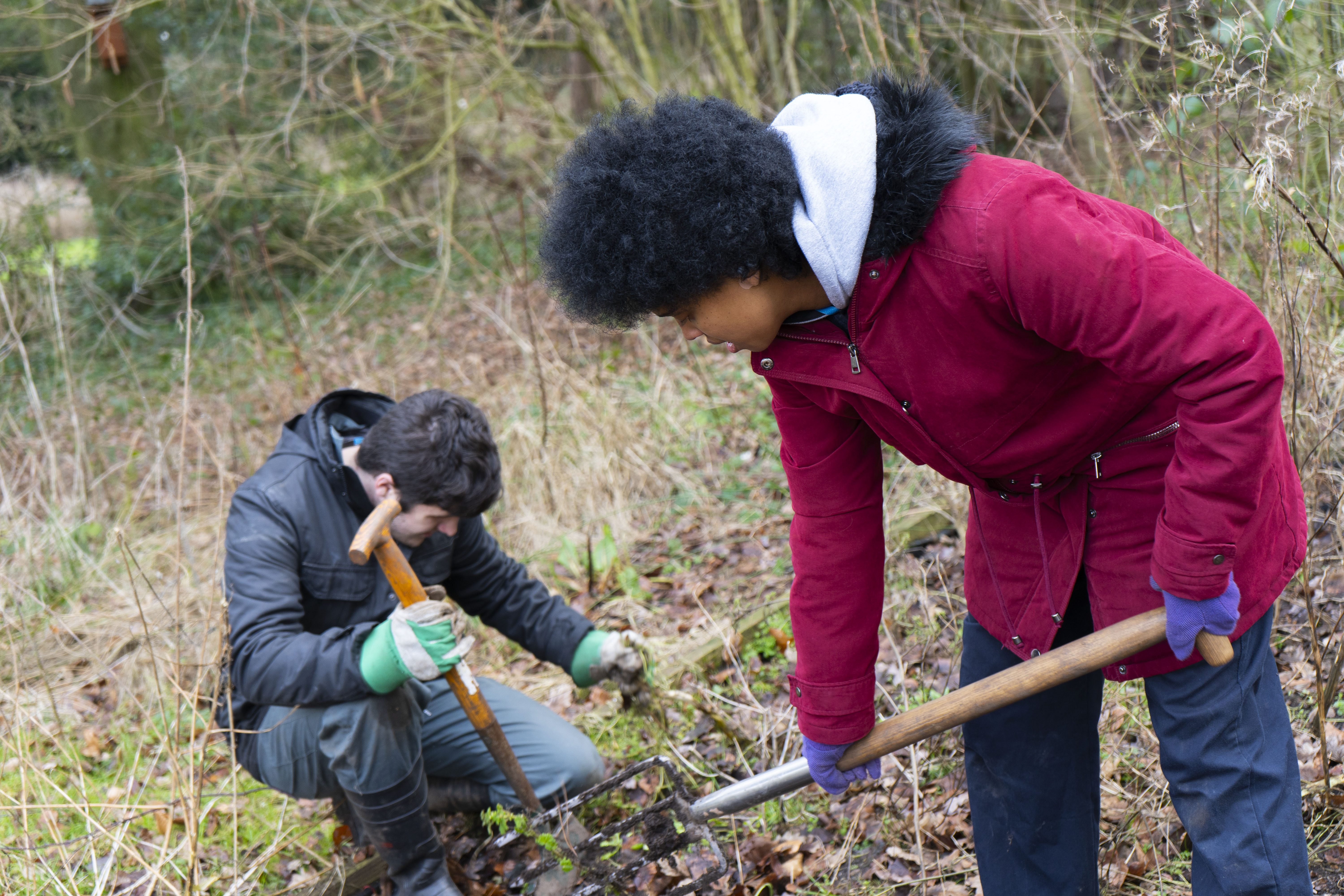 You are here: Home1 / 2 / Foundation students ‘go wild’ for work skills3 / Amy Cordial and Lewis Wilde busy clearing beds