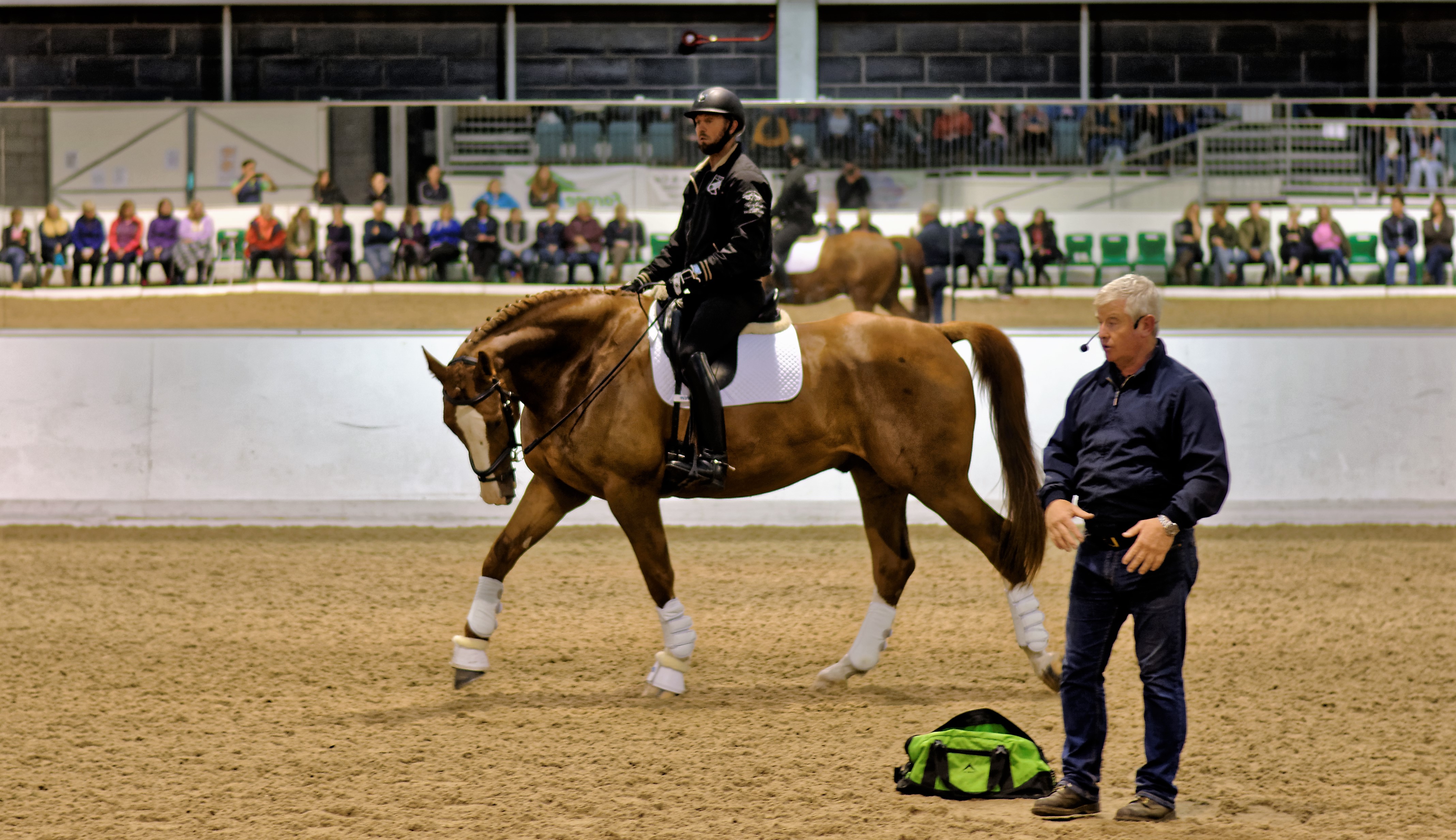 In front of a packed house, Richard worked with three very different types of horses ranging from a dressage horse with ‘stage-fright’ to a Welsh cob with loading problems.