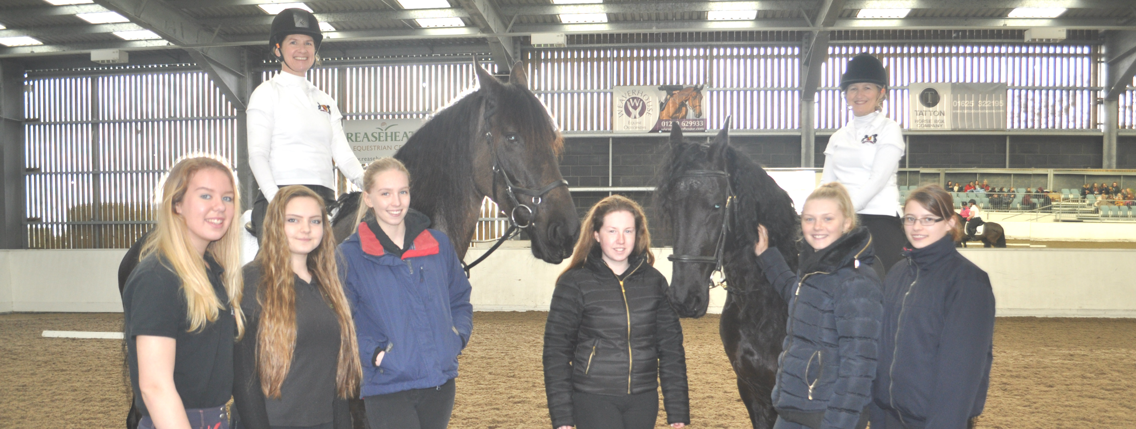You are here: Home1 / 2 / Horse Care Apprentices enjoy demo day3 / Horse care apprentices with friesians Julie Messenger Grace May Morgan...