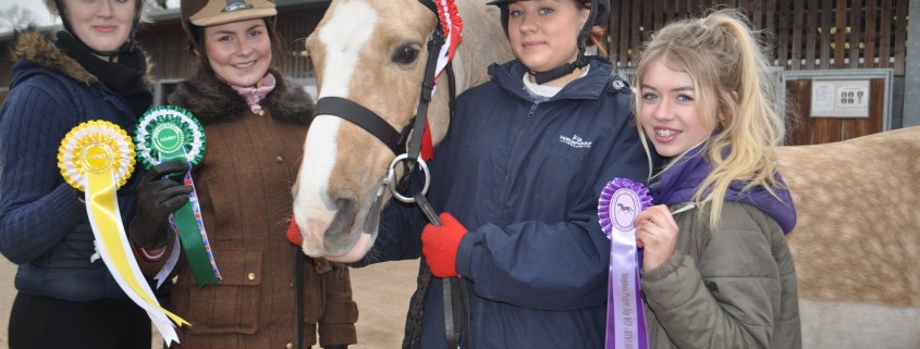 On show: Apprentices Becca Raftery, Emma Sutton, Holly Whitehead and Leah Whitfield and pony ‘Jack’ show off their rosettes after the ‘ Best Turned Out’ competition