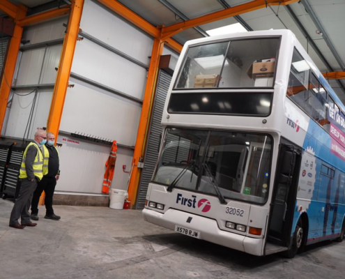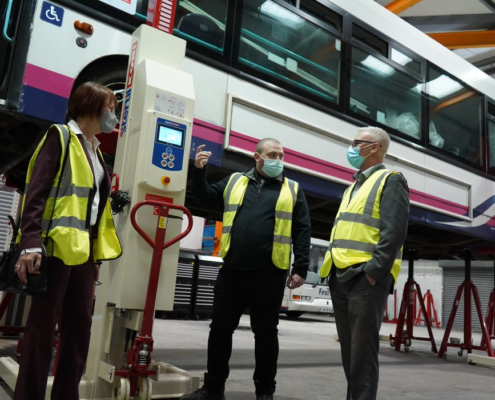 The new academy, which is on the nearby Hurleston Road Business Park, is home to the UK’s first dedicated bus and coach academy and our IMI visitors were keen to see how we have worked with industry partner First Bus to provide a comprehensive and relevant apprenticeship programme for the company’s apprentices.