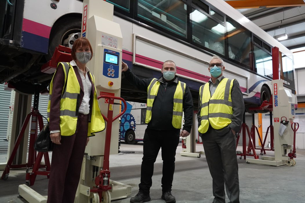 You are here: Home1 / 2 / IMI supports drive towards carbon neutral future3 / First bus coach jacked up