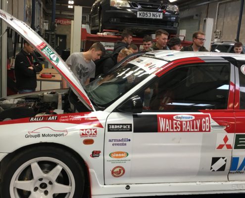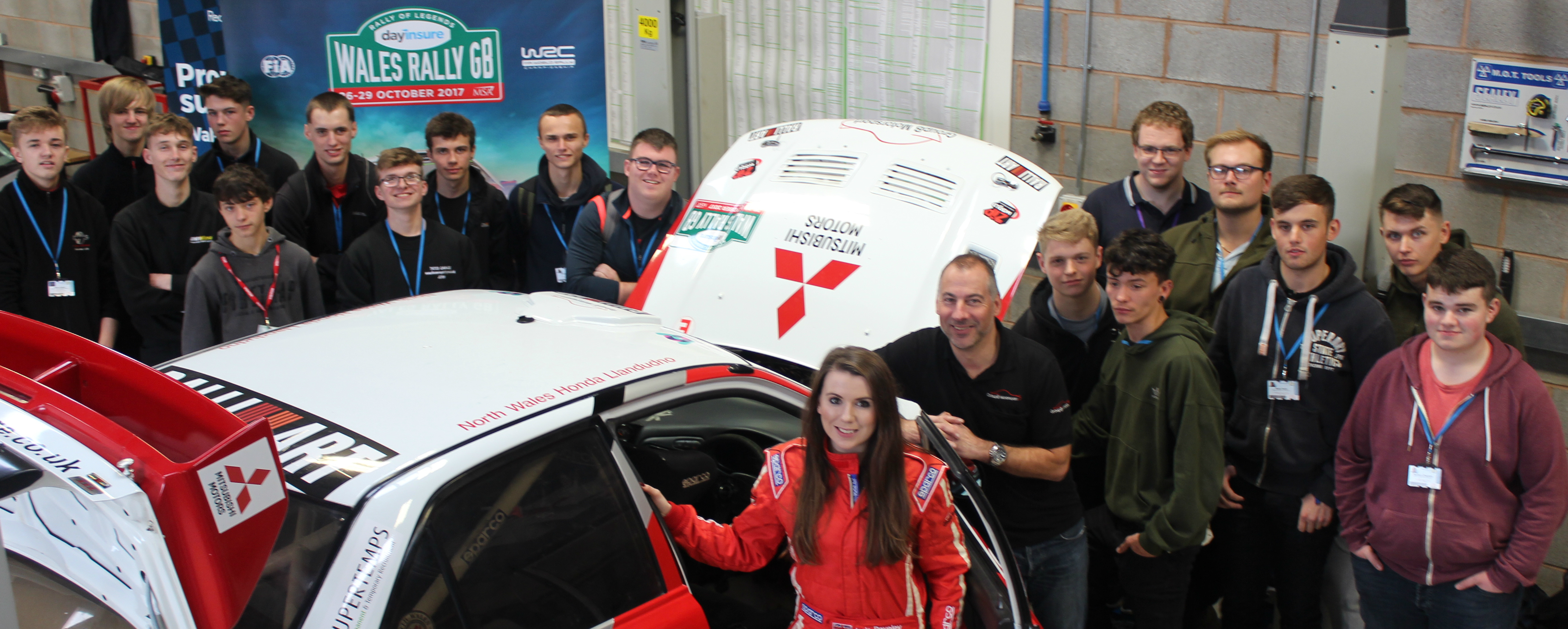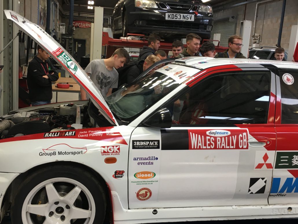 Motor vehicle students have had the privilege of meeting rally driver Jade Paveley, who vroomed onto campus with her Mitsubishi Evo 3 during the run-up to Dayinsure Wales Rally GB (October 26 – 29).