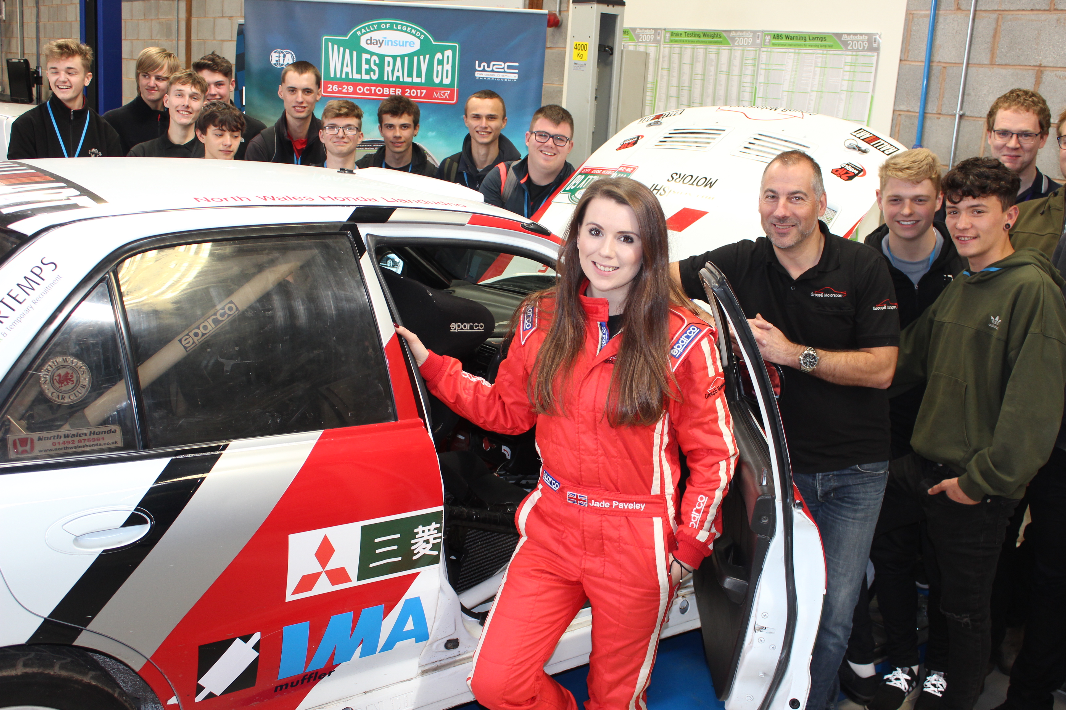 Jade and Dave Paveley, rally car,students