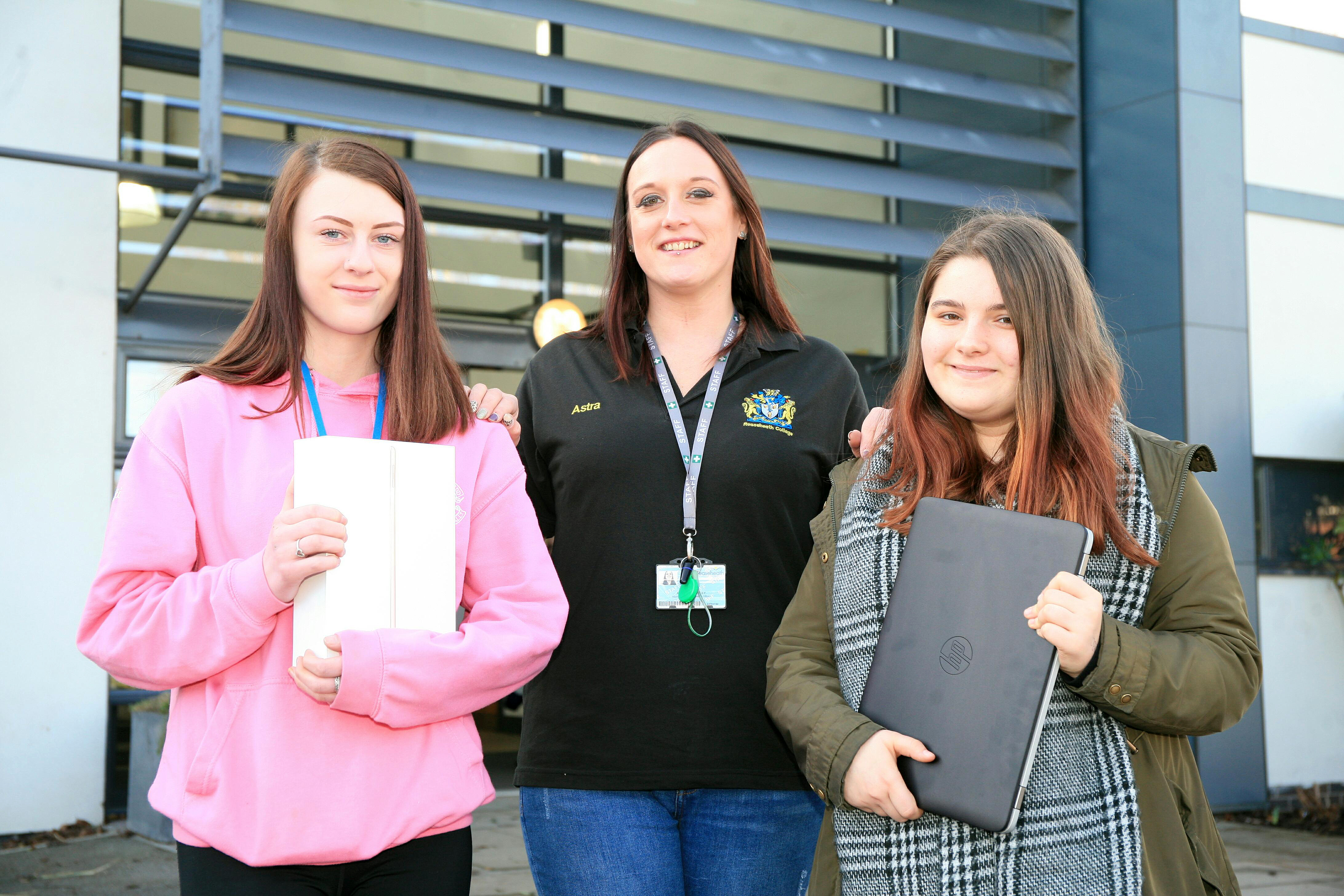 You are here: Home1 / 2 / Laura and Louise are our attendance award winners3 / Louise and Laura are pictured with Astra Drakely, Attendance and Retention...