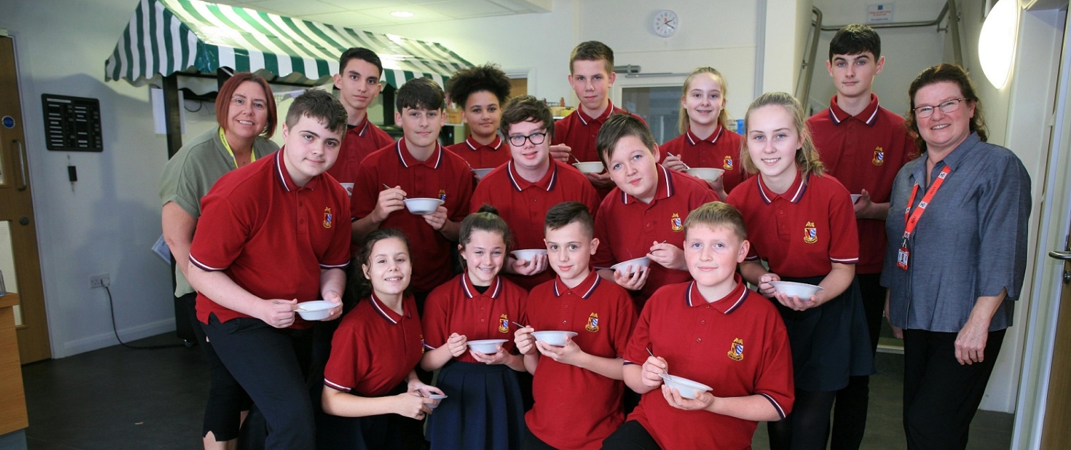Malbank pupils enjoying the soup they made during their visit to Reaseheath College’s Food Centre