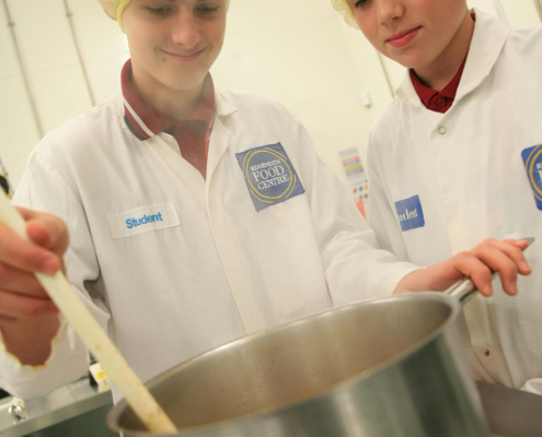 Fifteen Year 9 and Year 10 pupils who are studying sustainability and environmental issues as part of their GCSE in Food Technology enjoyed making their own soup in the college’s Food Centre and toured its dairy processing halls and other industry standard facilities.