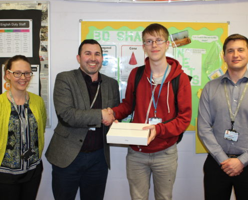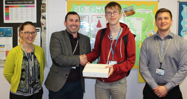 Beaumont who’s studying on our Level 2 Diploma in Light Vehicle Maintenance and Repair course and Level 2 Extended Certificate in Horse Care student Brandon were both awarded an iPad. The pair were presented with their prizes by Assistant Principal, Paul Spearritt in front of an audience of proud English and Maths tutors and their course managers.