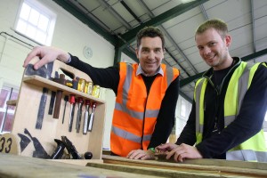 You are here: Home1 / 2 / MP builds on skills during Apprenticeship Week3 / MP Edward Timpson with joiner James Lewis
