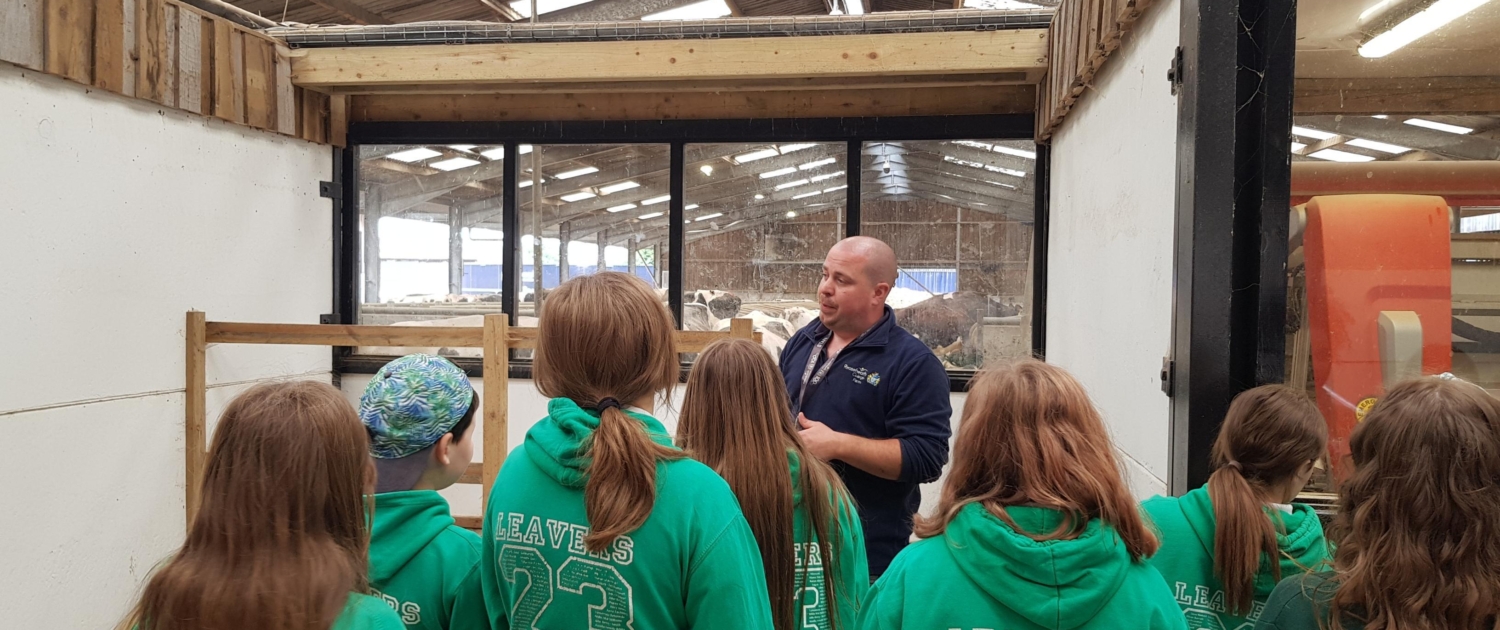 While visiting Reaseheath, students heard about careers in the horticultural and agricultural industries and the role they play in the process of food production from Senior Research Manager Dr Peter Gould, Horticultural Assistant Adam Durose, and Dairy Herd Manager Sam Walton.