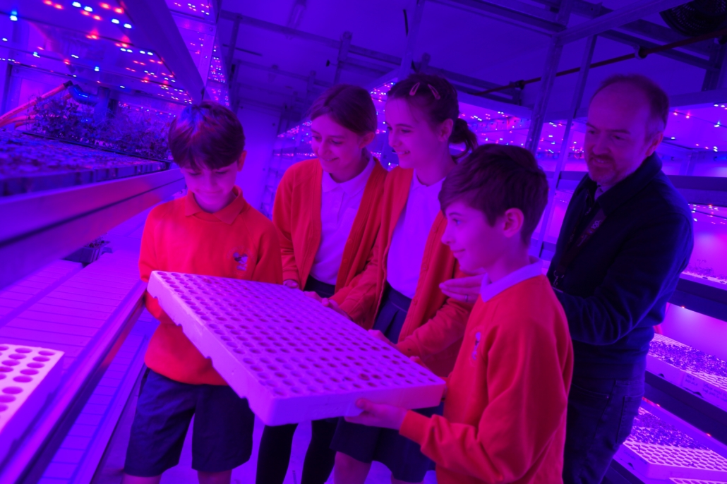 After preparing their meal, the pupils enjoyed a further ‘hands-on’ session in our glasshouses planting vegetable seeds which they will grow on at home and use for their next recipe. Some of the seeds were also left to germinate in our vertical farm and in the glasshouses so the pupils can compare growth under the three systems.