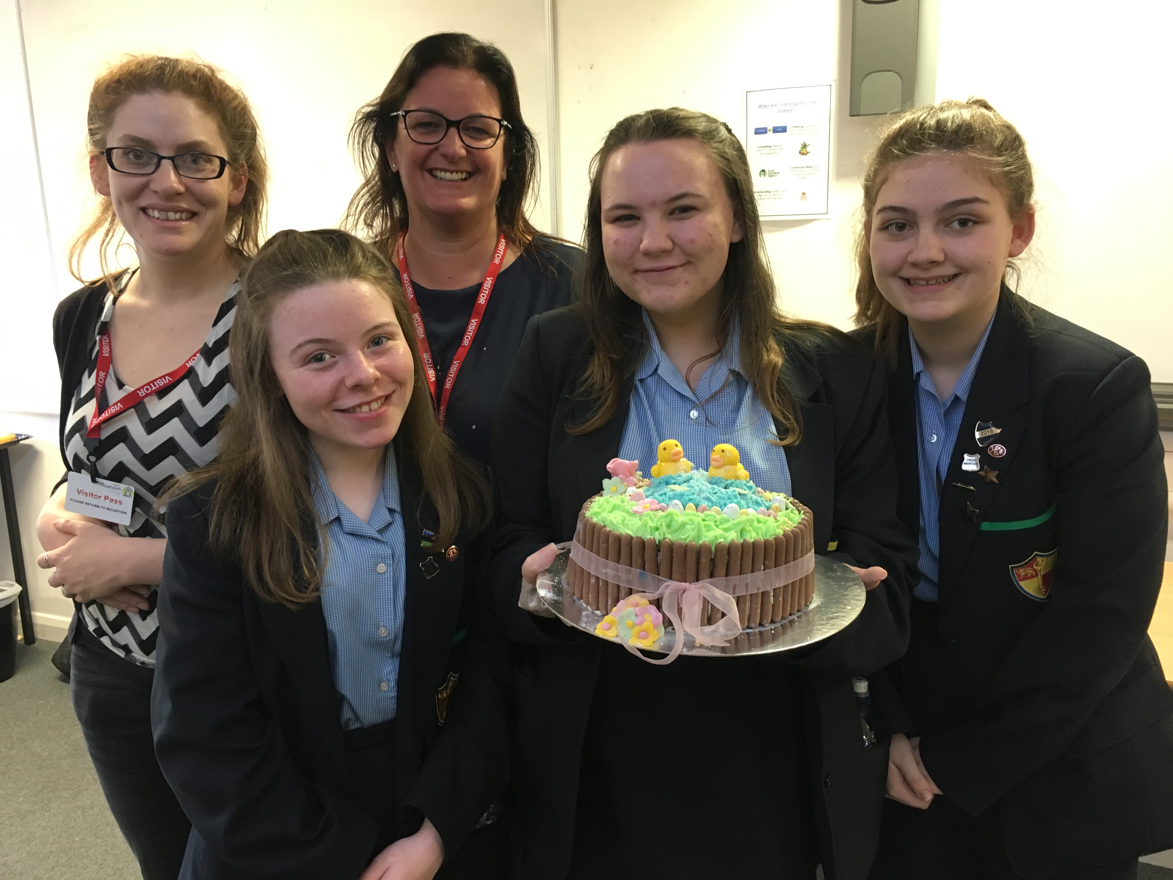 You are here: Home1 / 2 / Pupils rise to Reaseheath’s bake-off challenge3 / 2nd Lily , Georgia , Louisa (Prenton High School), judges Natalie Porter,...