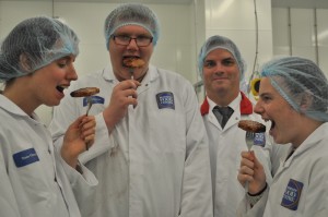 Sam Owen, Adam Timmis, Stephen Cook try burgers with Douglas Ewen