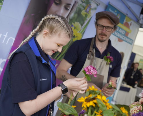 Visitors could also ride a mechanical horse, demonstrate their football skills, meet animals from Reaseheath zoo, try countryside and construction activities, create floral button holes, test their tractor driving skills on a simulator and have a go at cake decorating. There were also opportunities to drive a digger, practice tree climbing, milk a model cow, meet calves, create a business brand and learn about bees and plastic free products. Reaseheath’s Forest School also attracted many younger visitors.