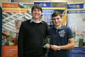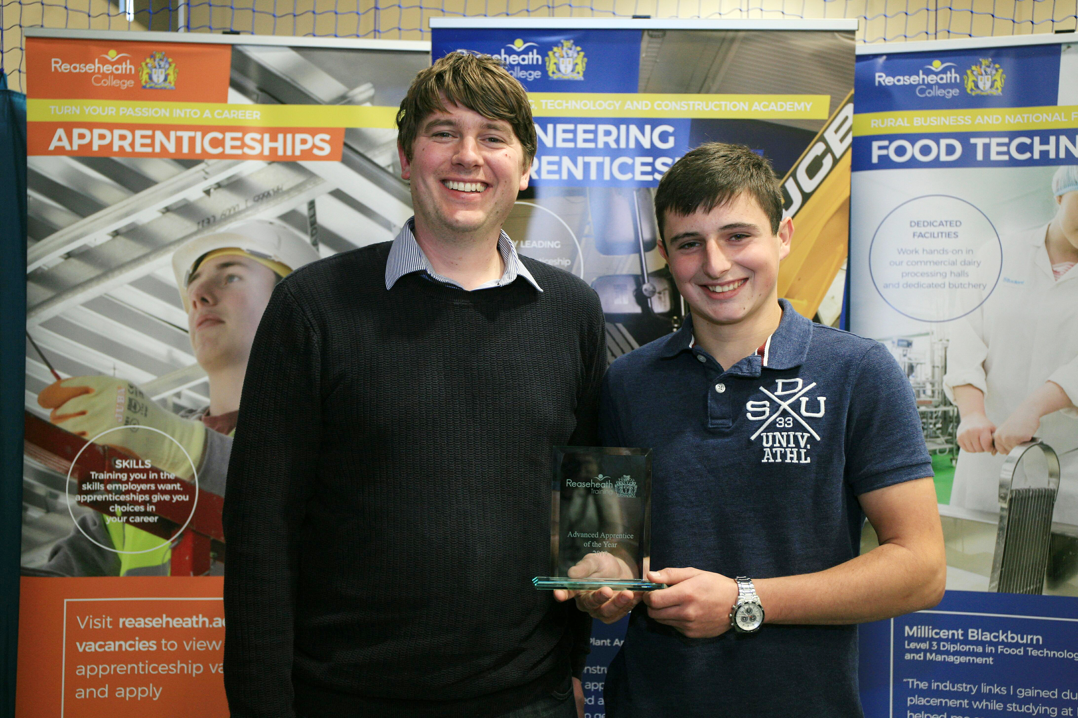 You are here: Home1 / 2 / Reaseheath College celebrates apprentice ‘stars’3 / Advanced Apprentice of the Year Aaron Sands with employer Steven Pace