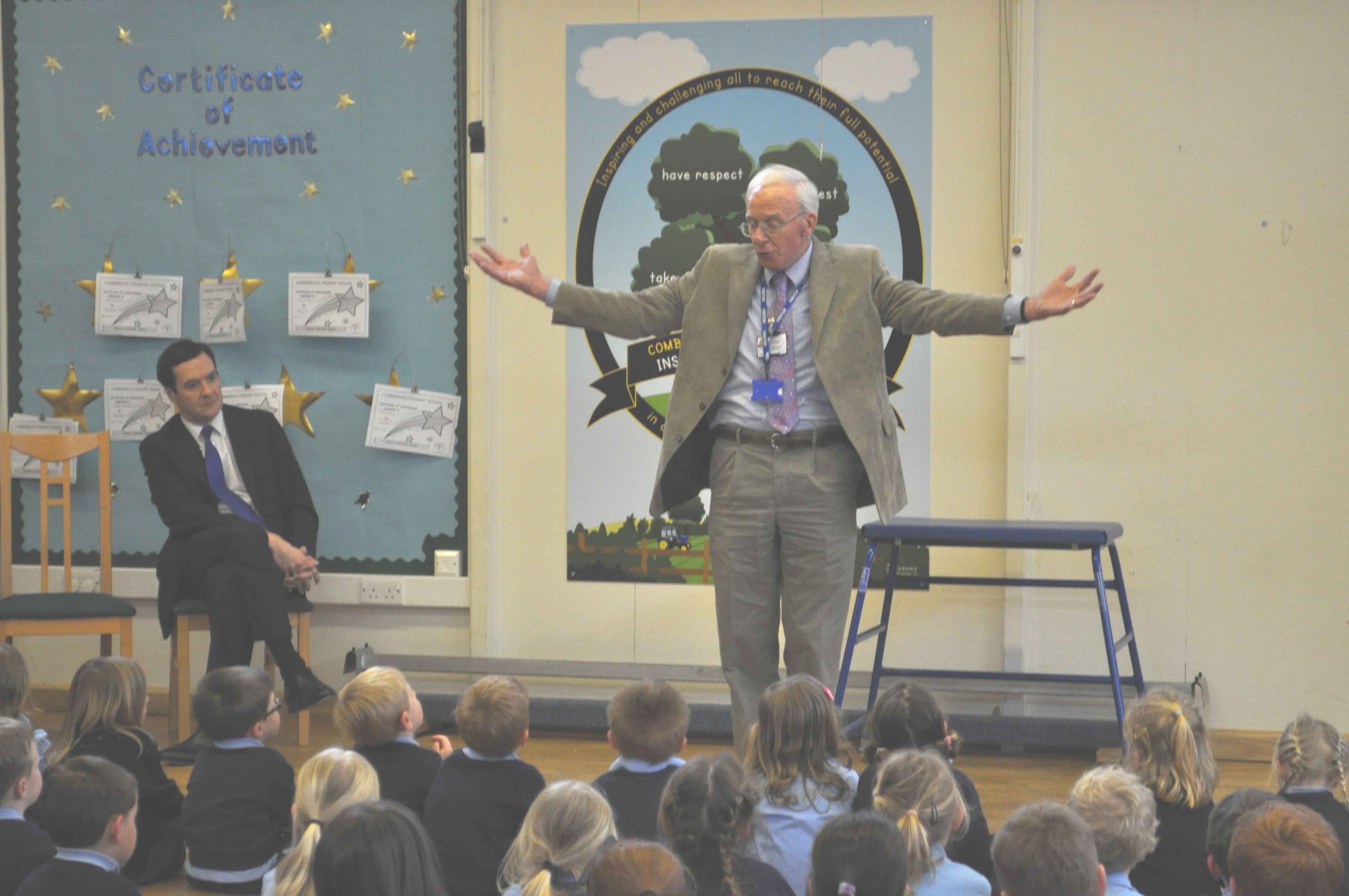 You are here: Home1 / 2 / Reaseheath College helps Cheshire school get full marks for gardening3 / Harry Delaney talking to pupils with George Osborne