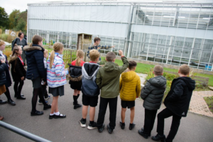 You are here: Home1 / 2 / Reaseheath College provides ‘field to fork’ experience for local school pupils3 / Wrenbury pupils outside greenhouses